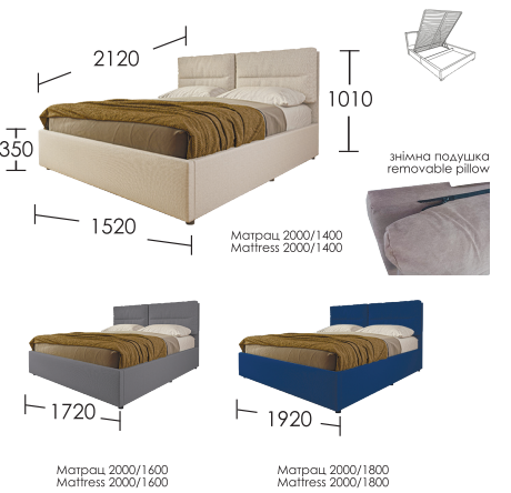 Спальне місце: 2000*1600мм
