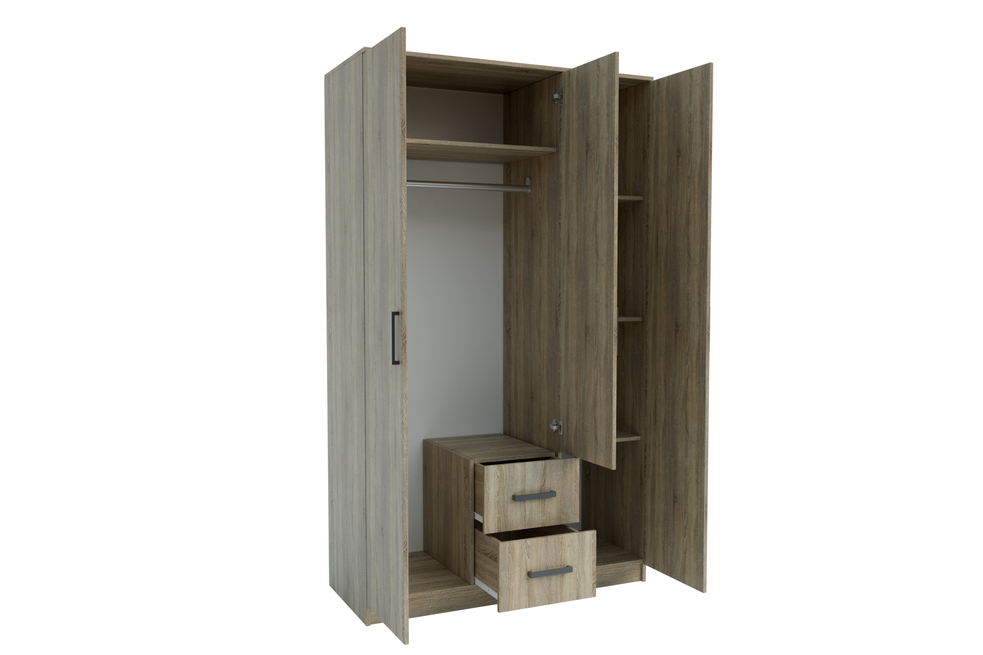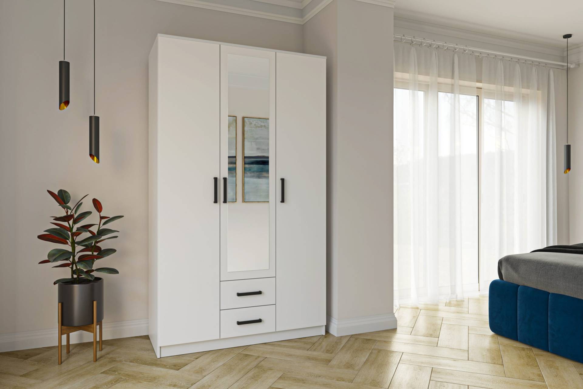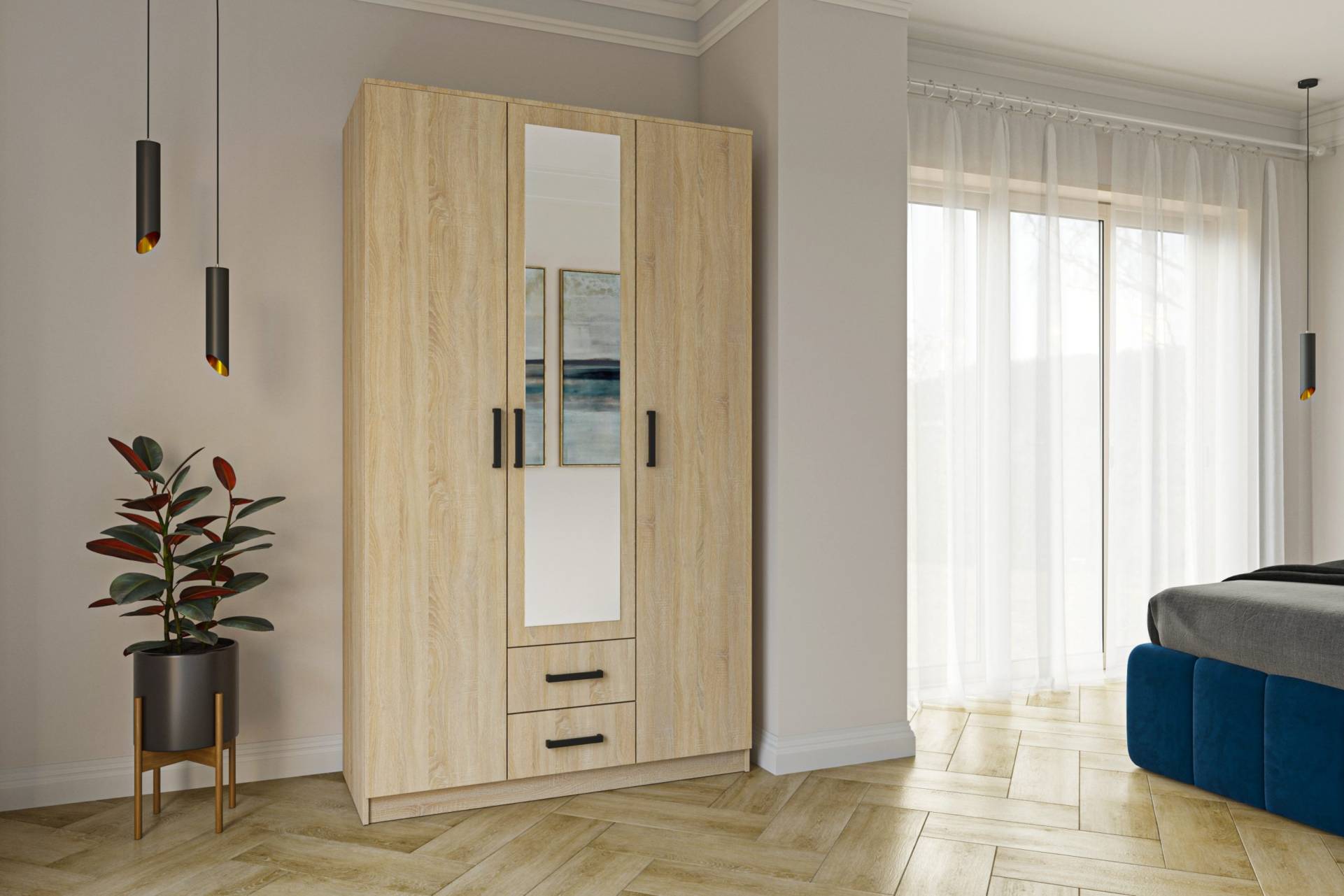 Шафа з 3 дверима та 2 шухлядами — це компактне і функціональне рішення для вашого інтер’єру, що дозволяє зручно організувати простір для зберігання одягу та аксесуарів.