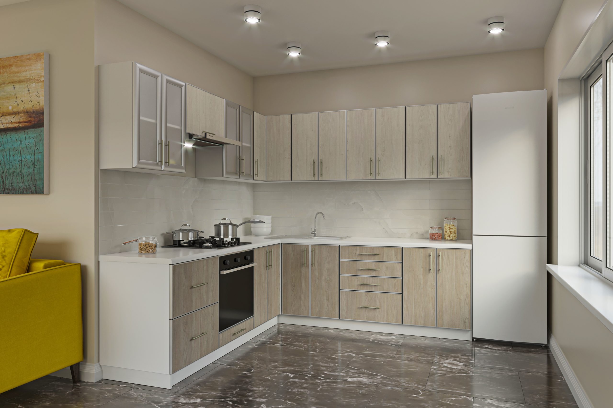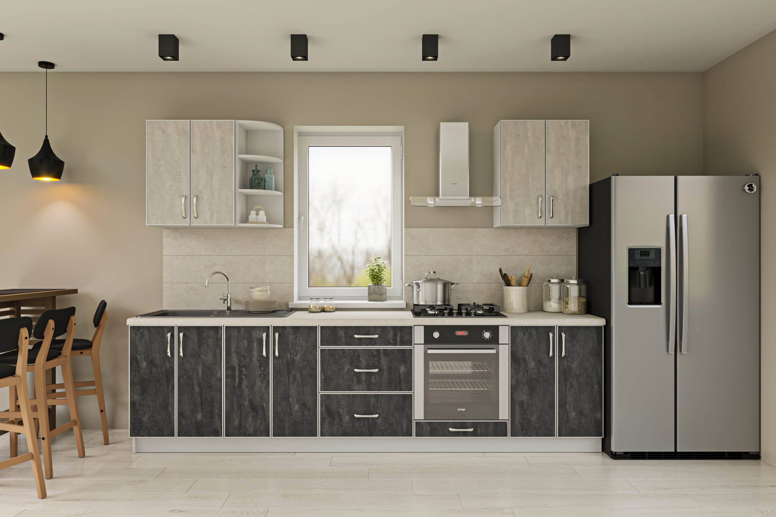“Вінтаж” – це стильне поєднання сучасних матеріалів і ретро-естетики. Фасади виконані із ЛДСП в алюмінієвій рамці, що забезпечує високу міцність, довговічність і унікальний вигляд.